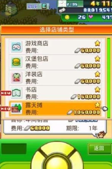 店铺选择:优先选服装店和游戏店,这两家店开起来简单,只需要上货收银。汉堡店还要烹饪,布局难度大于前两个。如果没有经验还是优先服装店游戏店。