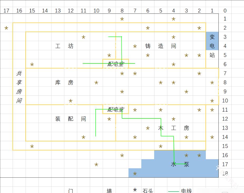 ②升二级墙壁时,升临近共享房间的墙壁。例如铸造间和工坊,升级房间内左上方墙壁(如图中红线所示),铸造间和工坊均是7格长度,其中一格预留为共享房间通道,另外六格升级,这样铸造间和工坊一共升级12面墙壁,即可两个房间均升四级,早日开始制作转子。木工房和装配间也可通过共享房间直接升到四级。