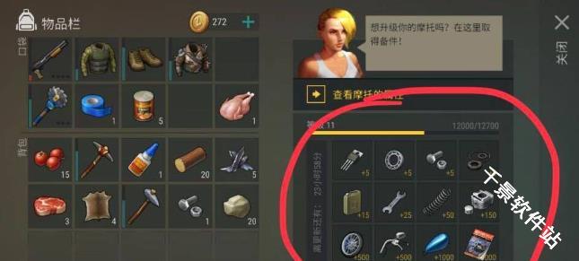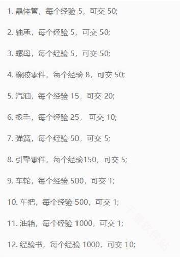 2、升级的话要去加油站升级,除了原来房子里面拿经验的那个女的,门口多了一个男的。里面的女的依然是换经验,可以提交如下的物品拿经验值用于升级自己的摩托。
