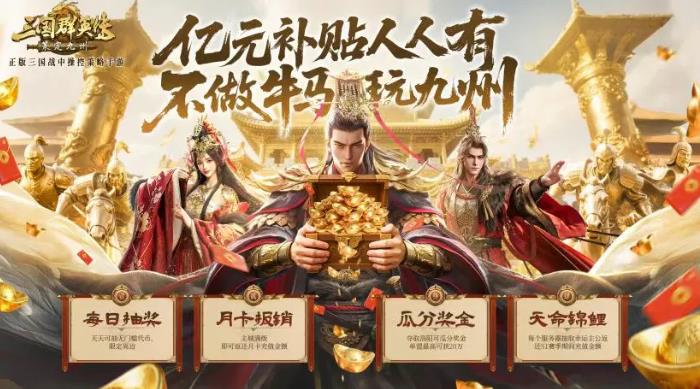 参与洛阳争夺可瓜分奖金,单盟最高20 万元;主城满级可全额报销月卡费用;每日抽无门槛代币与周边,每服 1 位 “天命锦鲤” 返还 S1 赛季全额充值。另有摸金寻宝活动,完成任务最多 6 次抽奖,可获黄月英、诸葛亮手办甚至 10g 真金元宝。